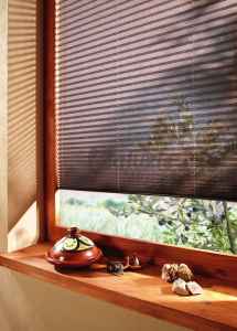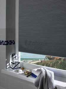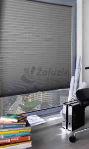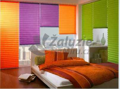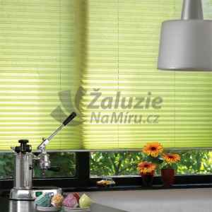 Plissé žaluzie ovládaná šňůrou. Pevný horní profil, stahování shora dolů.
