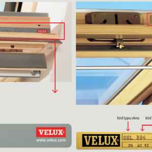 Většina střešních oken má kód vyražený nebo nalepený přímo na křídle nebo na vnitřní straně rámu. Kód by měl být dobře viditelný při otevření okna.